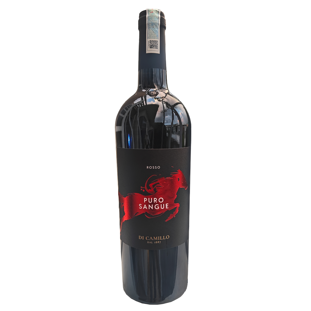 PURO SANGUE ROSSO dòng rượu vang đỏ đến từ Ý, được lên men tự nhiên, mang phong cách đậm đà, mạnh mẽ “dấu ấn ngựa đỏ”. Được đóng chai bởi nhà làm rượu lâu đời Di Camillo ( từ năm 1887). Thiết kế nổi bật với hình ảnh Ngựa đỏ tượng trưng cho sức mạnh – đam mê – bứt phá đúng với tinh thần của những người yêu rượu vang hiện đại.